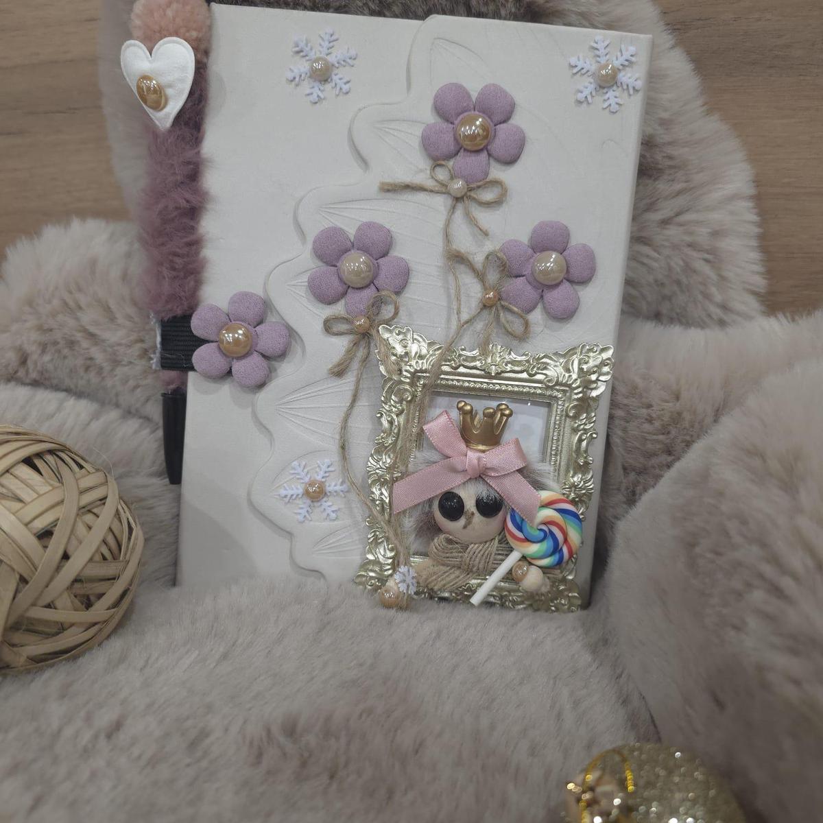 Églantine, petite muse mauve nichée dans un pompon de douceur, transforme chaque mot en une caresse poétique. Avec ses fleurs délicates, ses nœuds violets et son regard pétillant, elle accompagne l’écriture comme un souffle féerique posé au creux de la main. Une complice idéale pour embellir cahiers, carnets secrets et moments d’inspiration.